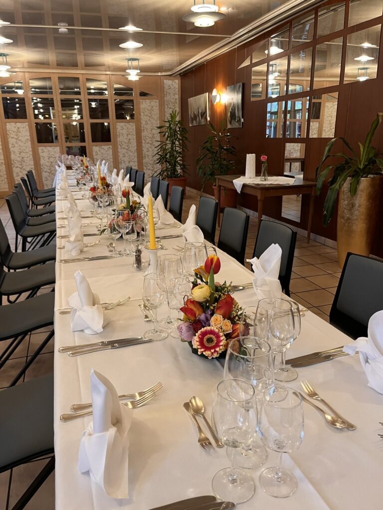 Notre restaurant peut accueillir jusqu’à 50 personnes et notre salle de banquets jusqu’à 100 personnes assisent. Notre magnifique jardin vous invite, par beau temps, de prendre l’apéritif dehors.